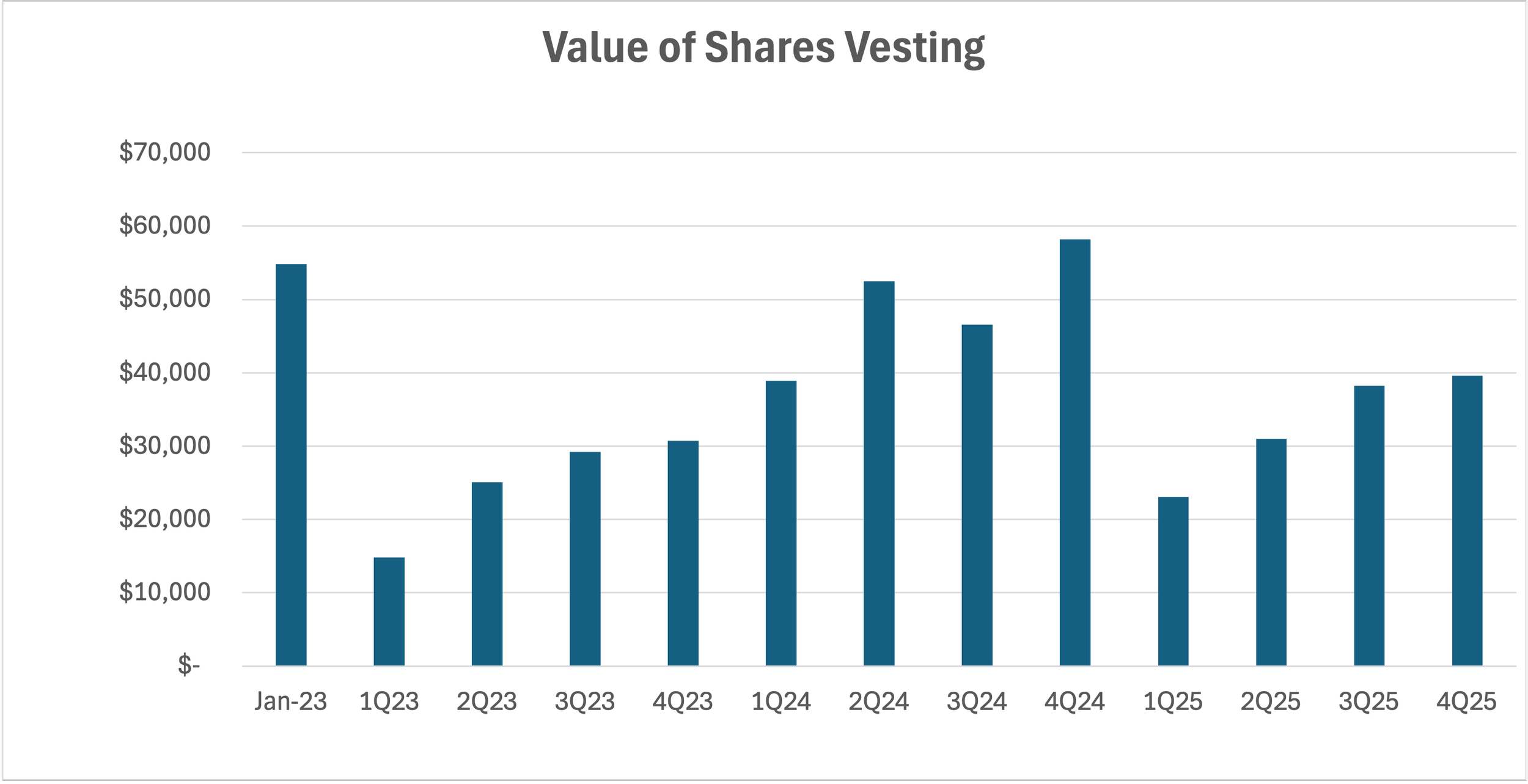 While vested amounts are front-loaded, stock-price acceleration can smooth the value received. For example, here’s how the dollar value of the Nvidia RSU grant described above would have played out: