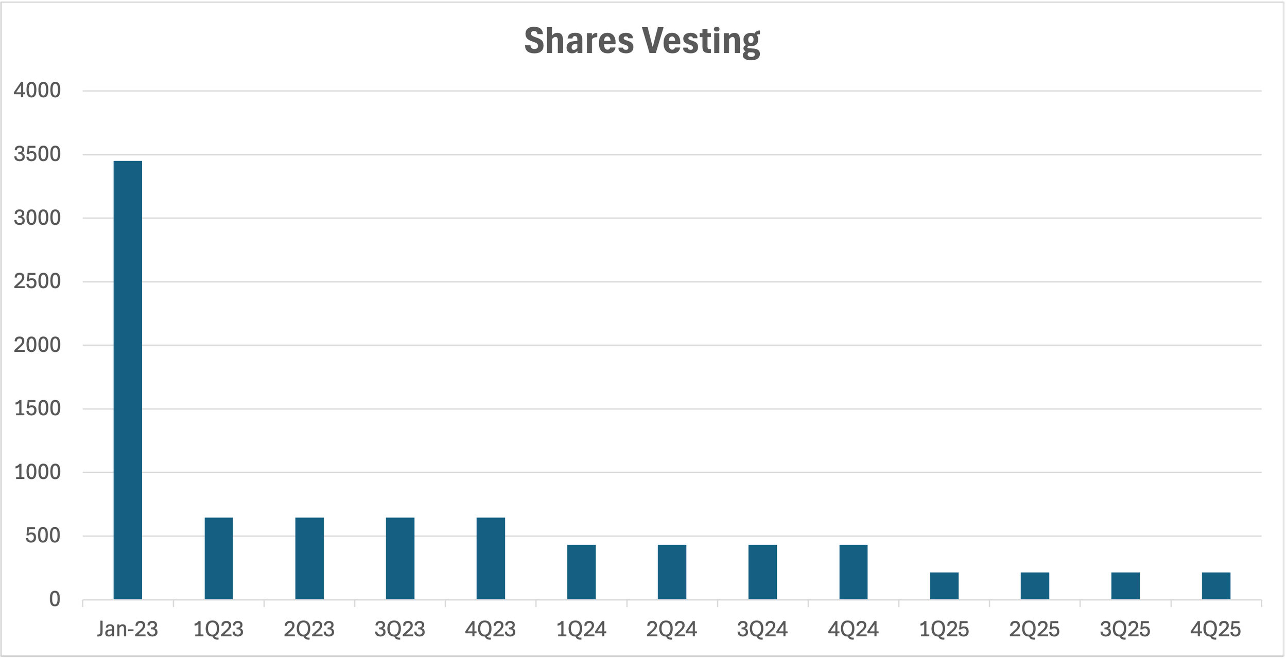 For example, a new employee starting work in December 2021 with an on-hire restricted stock unit grant of $250,000 would have received $250,000/$29, or 8,621 RSUs in early January 2022. On the first anniversary of the grant date, the employee would have received 3,448 shares. Each quarter thereafter, the employee would see 25% of his yearly allocated percentage of total RSUs vest.